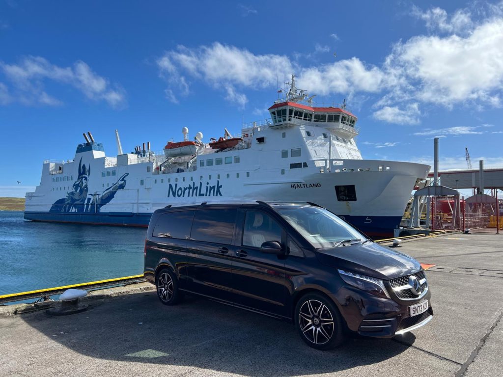 Shetland Chauffeur Company Lerwick based Mercedes V300 executive limousine Ideal for: Private tours for up to 5 people Airport / ferry transfers Bespoke hires Wedding transport Special event transport